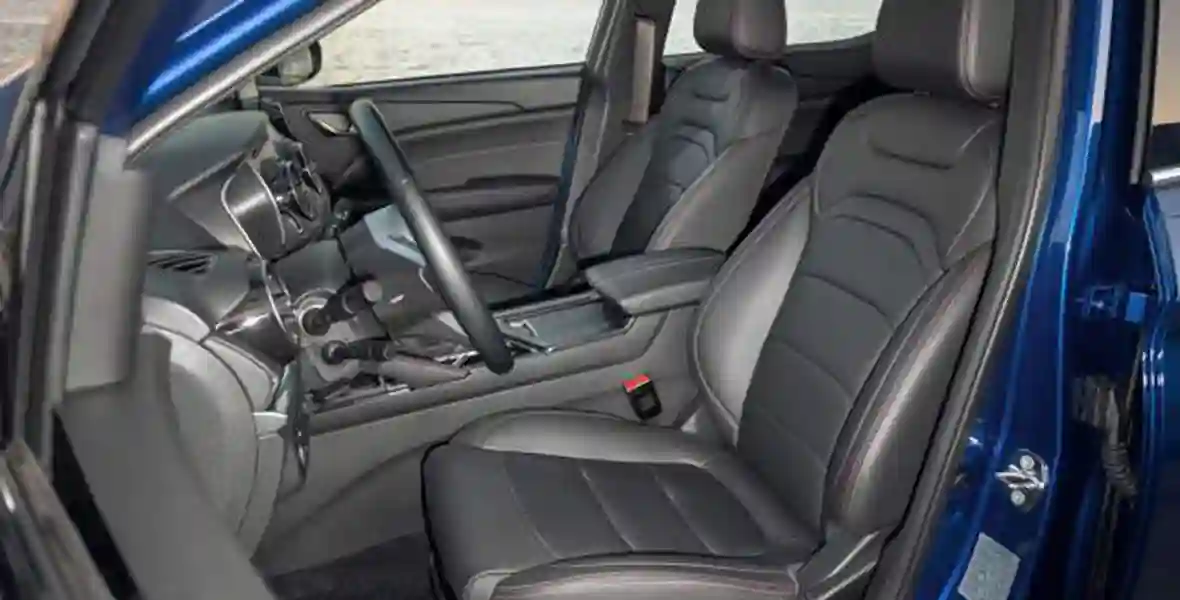 Лучше всего DFSK 500 смотрится сбоку в профиль и сзади в три четверти. Создается впечатление, что дизайнеры начинали рисовать машину с кормы и, когда пришла пора приниматься за переднюю часть, подустали. Выпуклая крышка багажника в стиле Audi Q5, парящая, без задней стойки крыша и изящно выгнутая боковина сочетаются с не самым выразительным «лицом». Простенькие фары-галогенки, черная решетка радиатора, еле заметные светодиодные полоски — то ли «Крета» первого поколения, то ли какой-то «Ниссан» — сходства с последним добавляет характерная ниссановская форма шильдика.