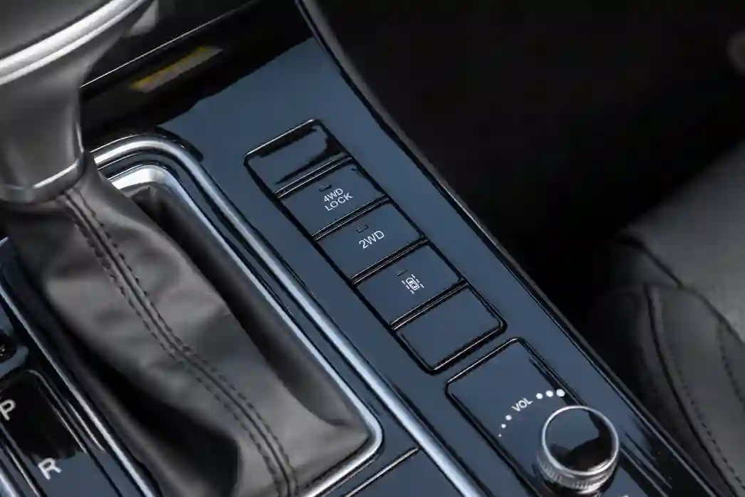 Понравился массивный рычаг 6-диапазонной автоматической трансмиссии Hyundai PowerTech. Система полного привода конструкции Borg Warmer управляется кнопками на центральной консоли. По умолчанию подключен автоматический полноприводный режим.